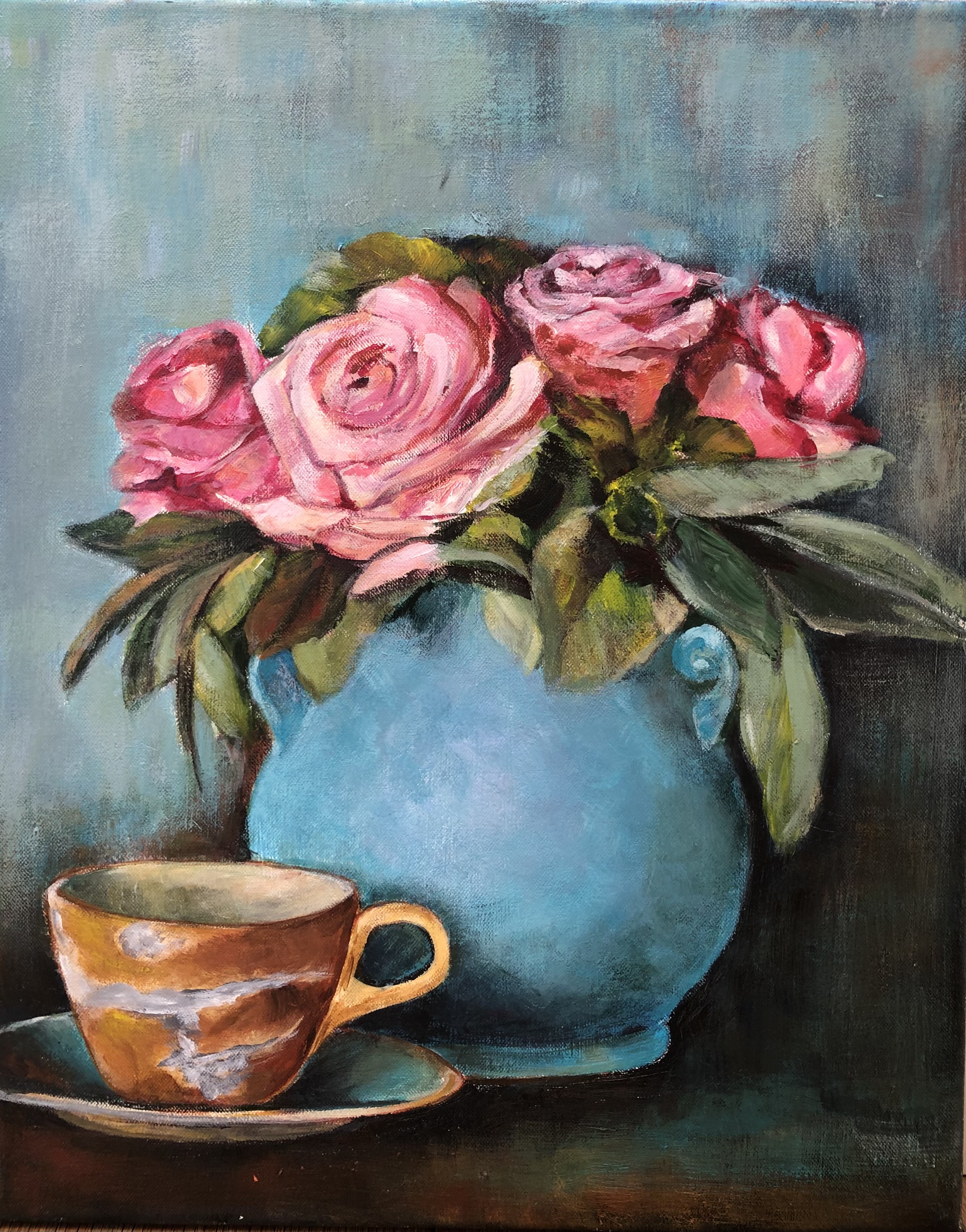 Vaas met rozen, acrylverf, 50x40 cm
